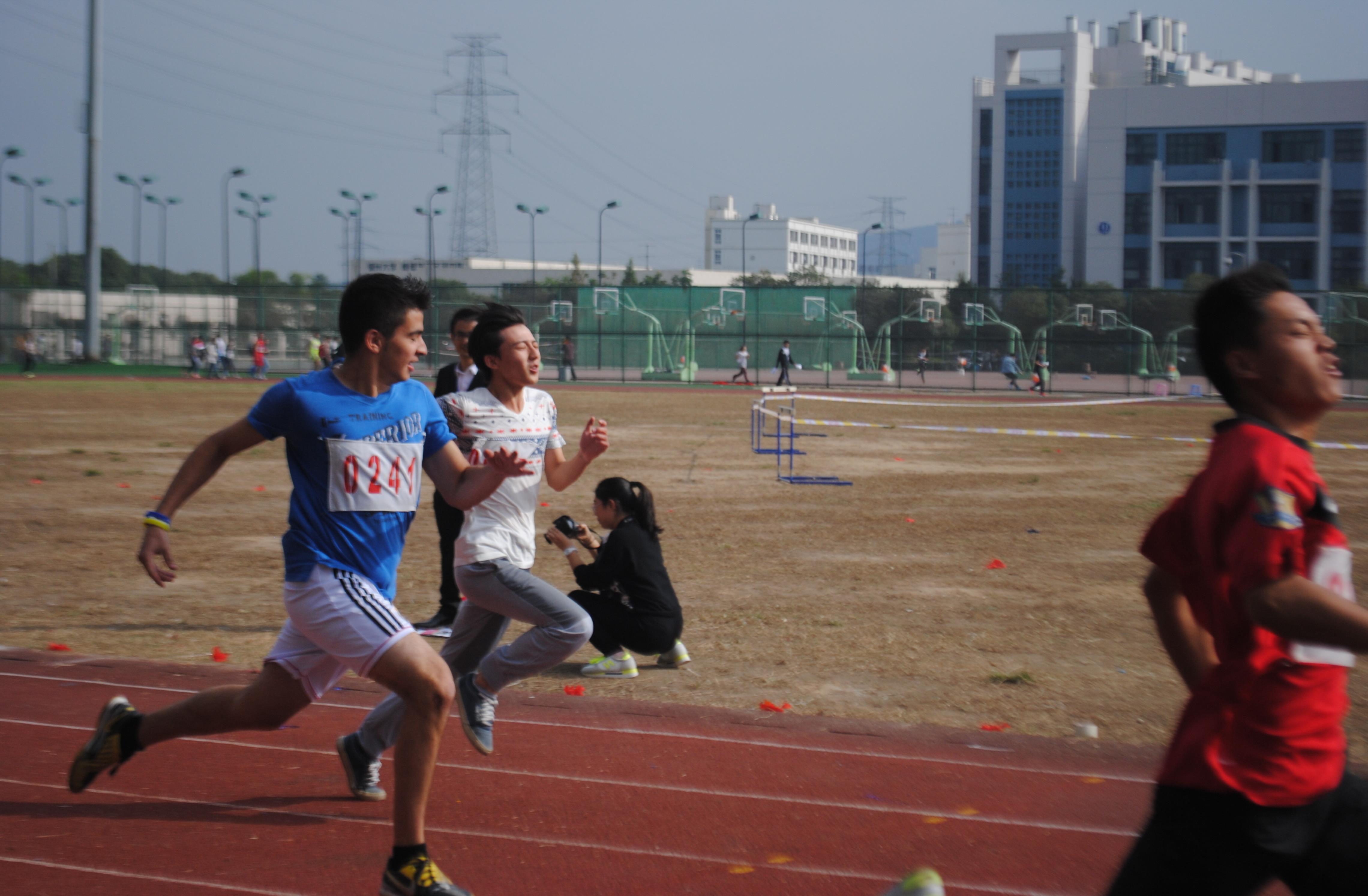 29日上午,比赛项目有百米短跑的预赛和两人三足等项目。我院14机械国际化班级外国留学生也积极参与100米和200米短跑,成为运动场上的一道独特风景。百米短跑赛激情,两人三足比默契。赛出的不仅是个人的风采,更是一种团队精神。