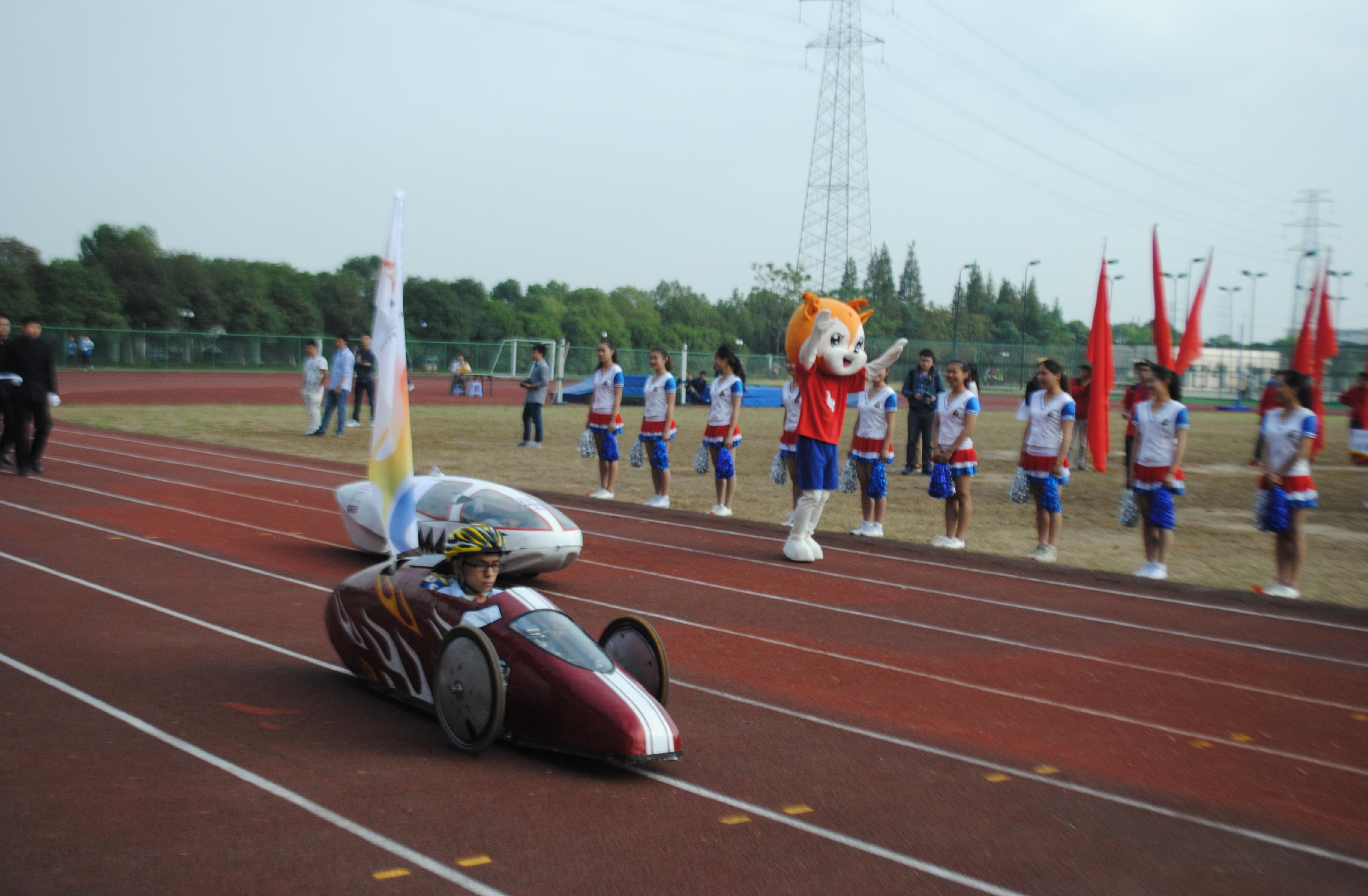 我院学子研发的环保节能车在开幕式上亮相