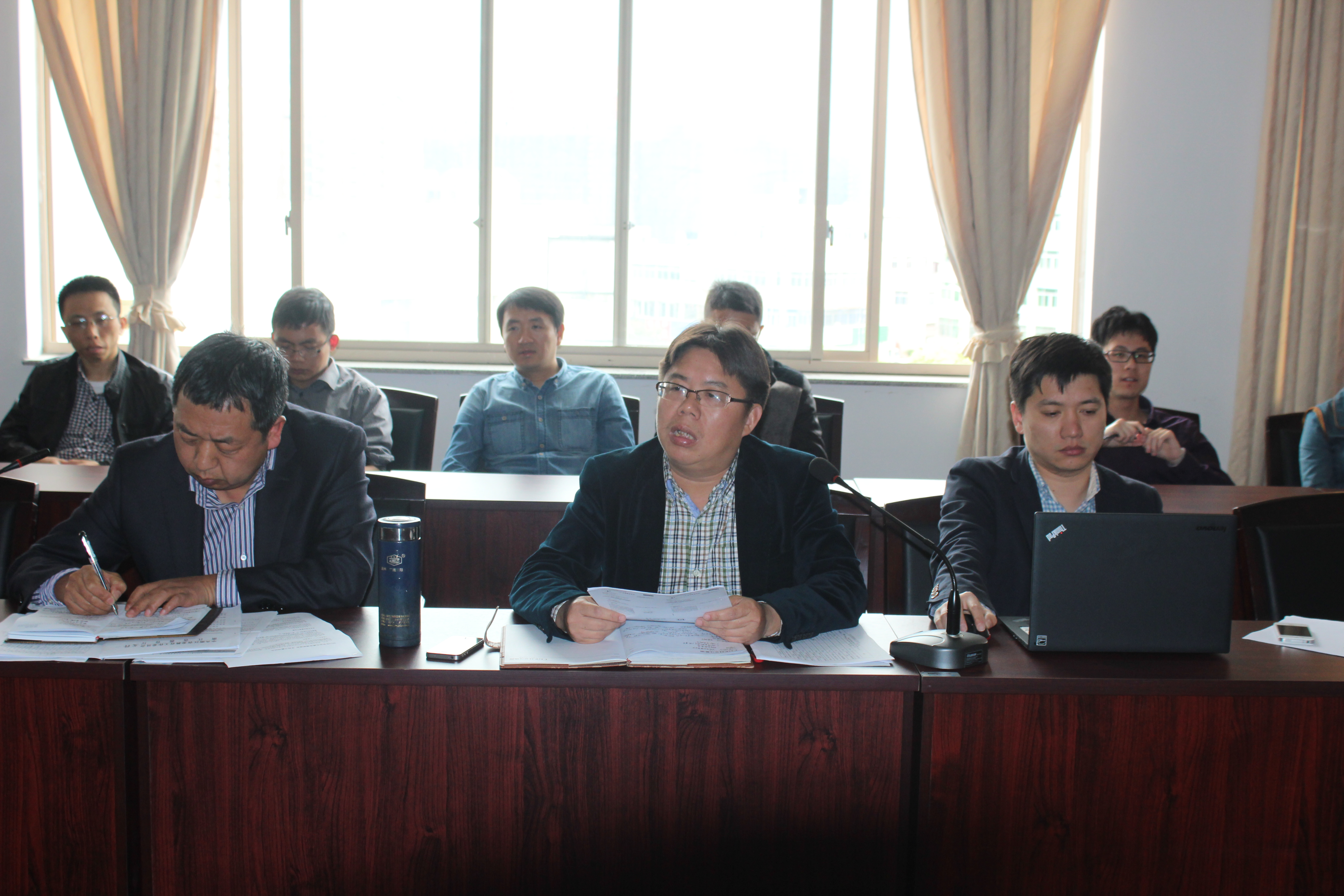 周宏明副院长首先从学院专业建设规划、国际化专业申报、专业分流、学科建设等几个方面对近一段时间的工作向全院教师作了通报,同时也对下一阶段的工作进行了布置。他指出下一阶段的学院主要工作是在做好学生毕业设计等日常教学工作的基础上,大力推进学院内涵建设,进一步夯实教学基本建设和学科建设,提高学院教学科研水平。院党总支书记方乐平宣读了学校关于冯爱新教授的任职文件,并对学院领导班子工作分工和学院部分人员的岗位调整进行了通报,同时对自己分管工作进行了通报。李峰平副院长就学院的科研和学科工作以及实验室建设等方面作了具体部署。