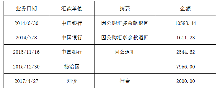 黑料网 基本户账户(1203206009201055368,工行马鞍池支行)在2014-2017年度收到以下无主款,现将款项的明细情况予以公示: